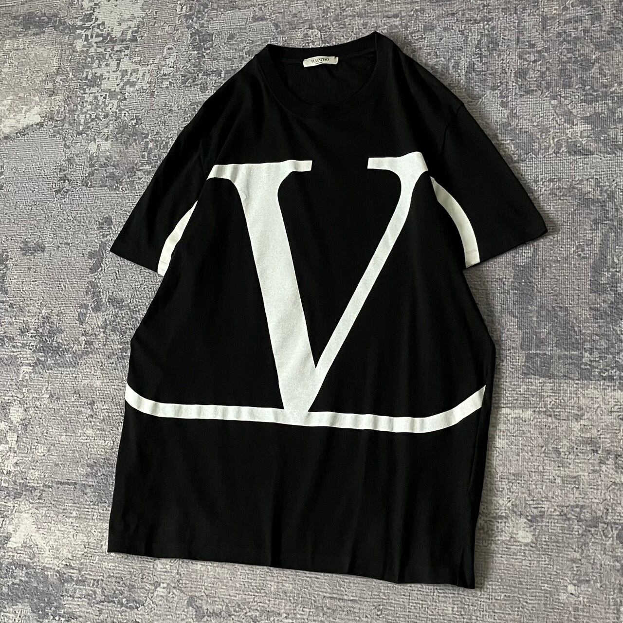 【QR確認済/XL】ヴァレンティノ ビッグロゴ入りTシャツ Vロゴ ブラック 黒