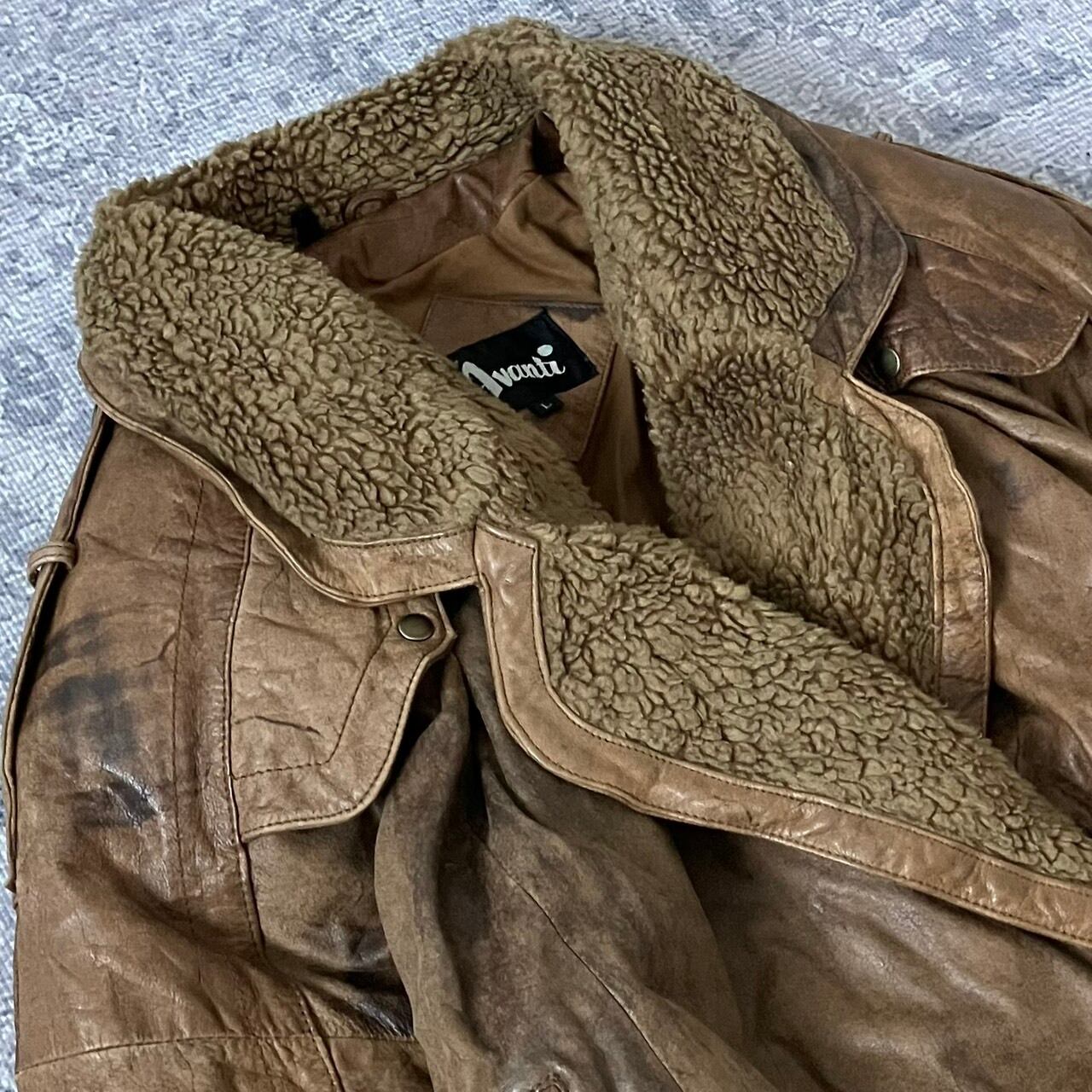 【短丈】レザージャケット ボア 金ボタン 本革 Y2K ブラウン 茶色 L
