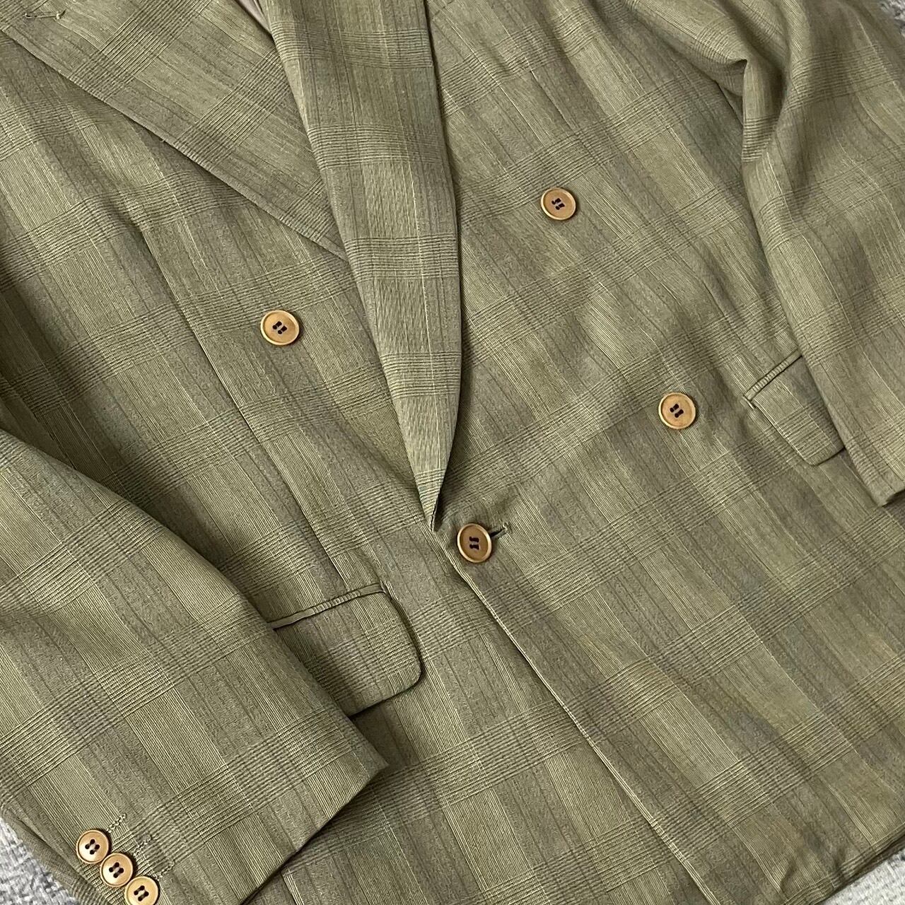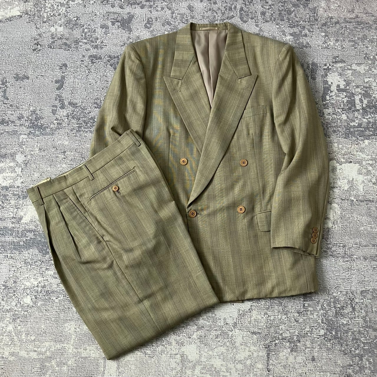 【90S】セットアップ スーツ ダブル ベージュ チェック柄 ヴィンテージ