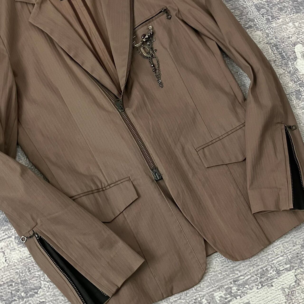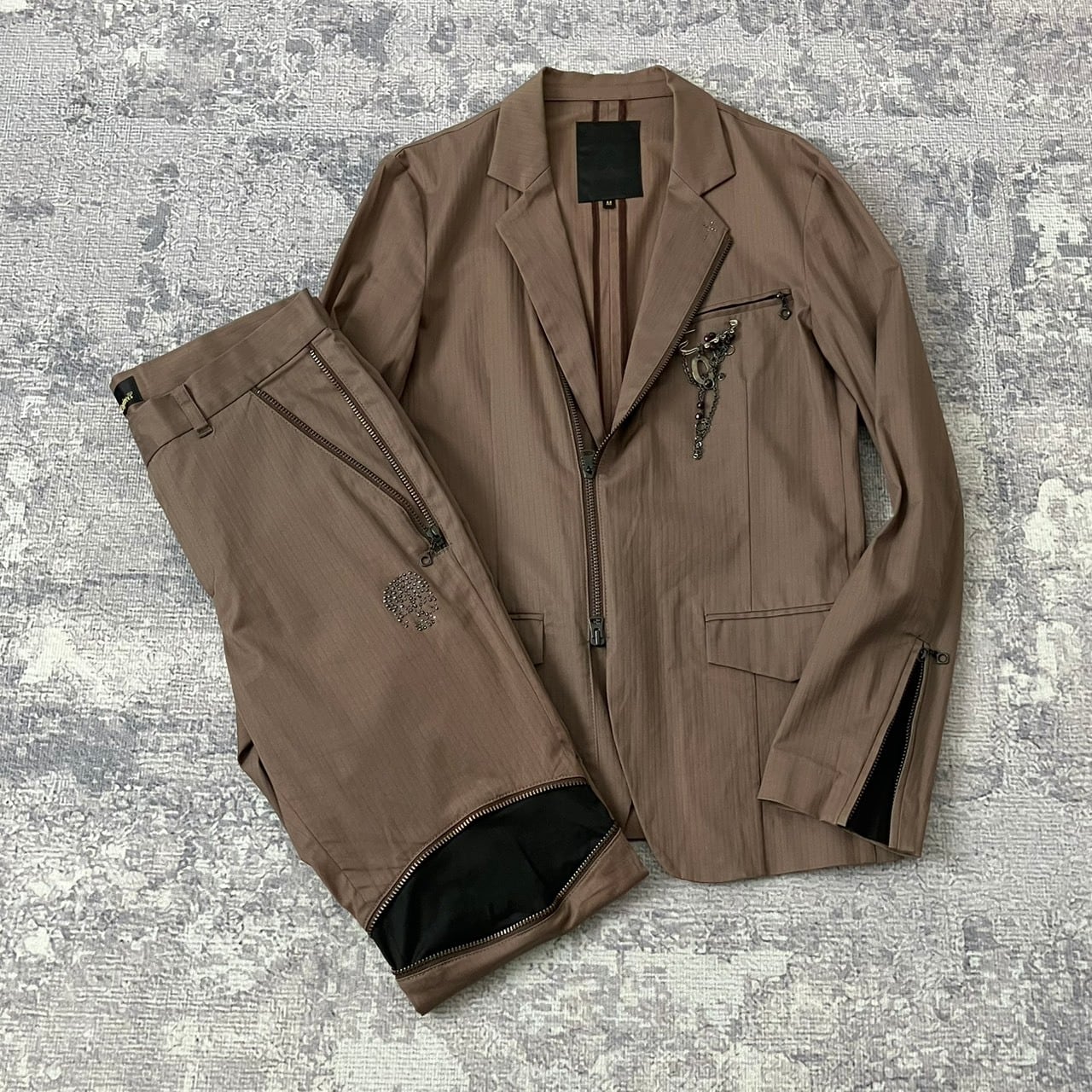 【Y2K】セットアップ スーツ ジップ ギミック ラインストーン ブラウン 茶色