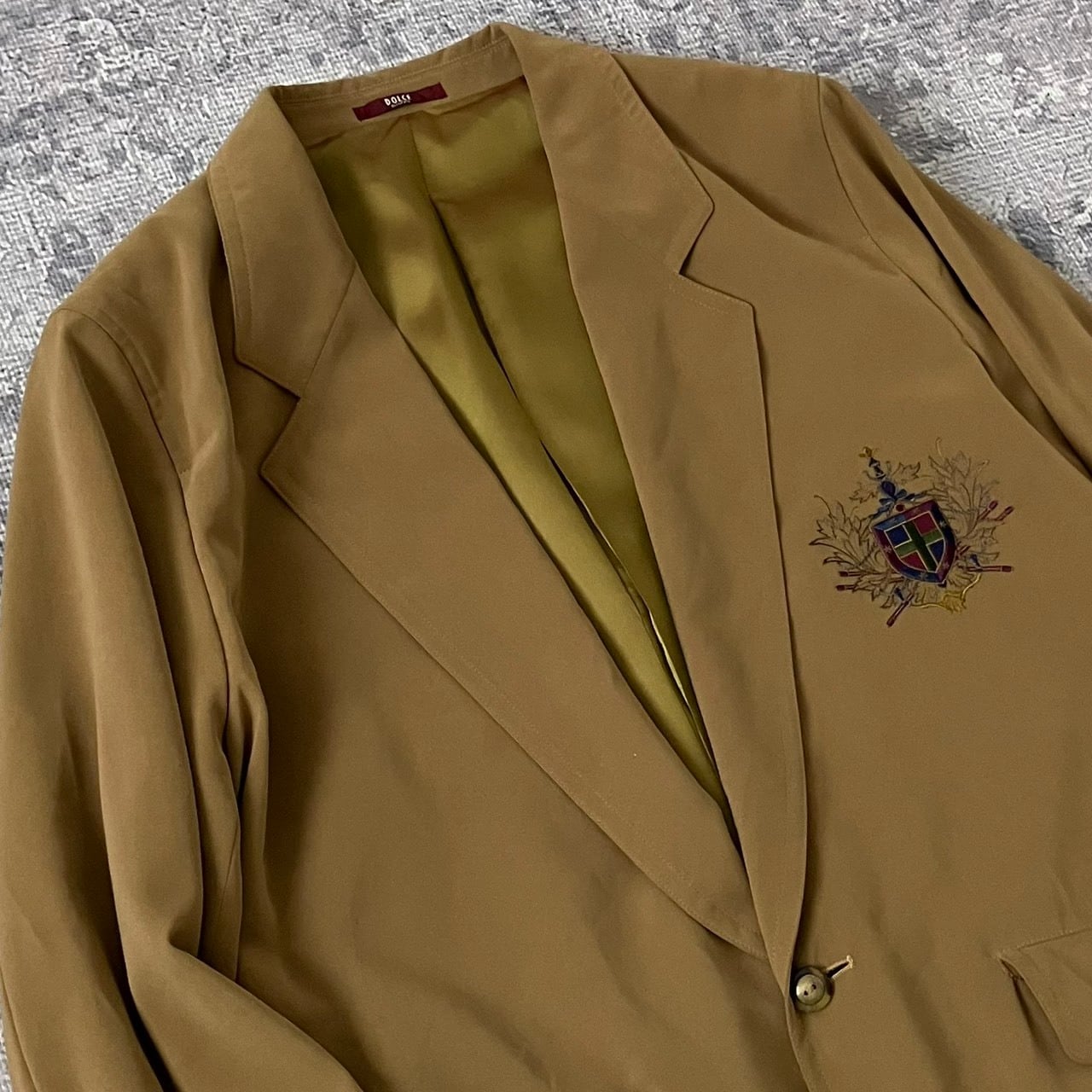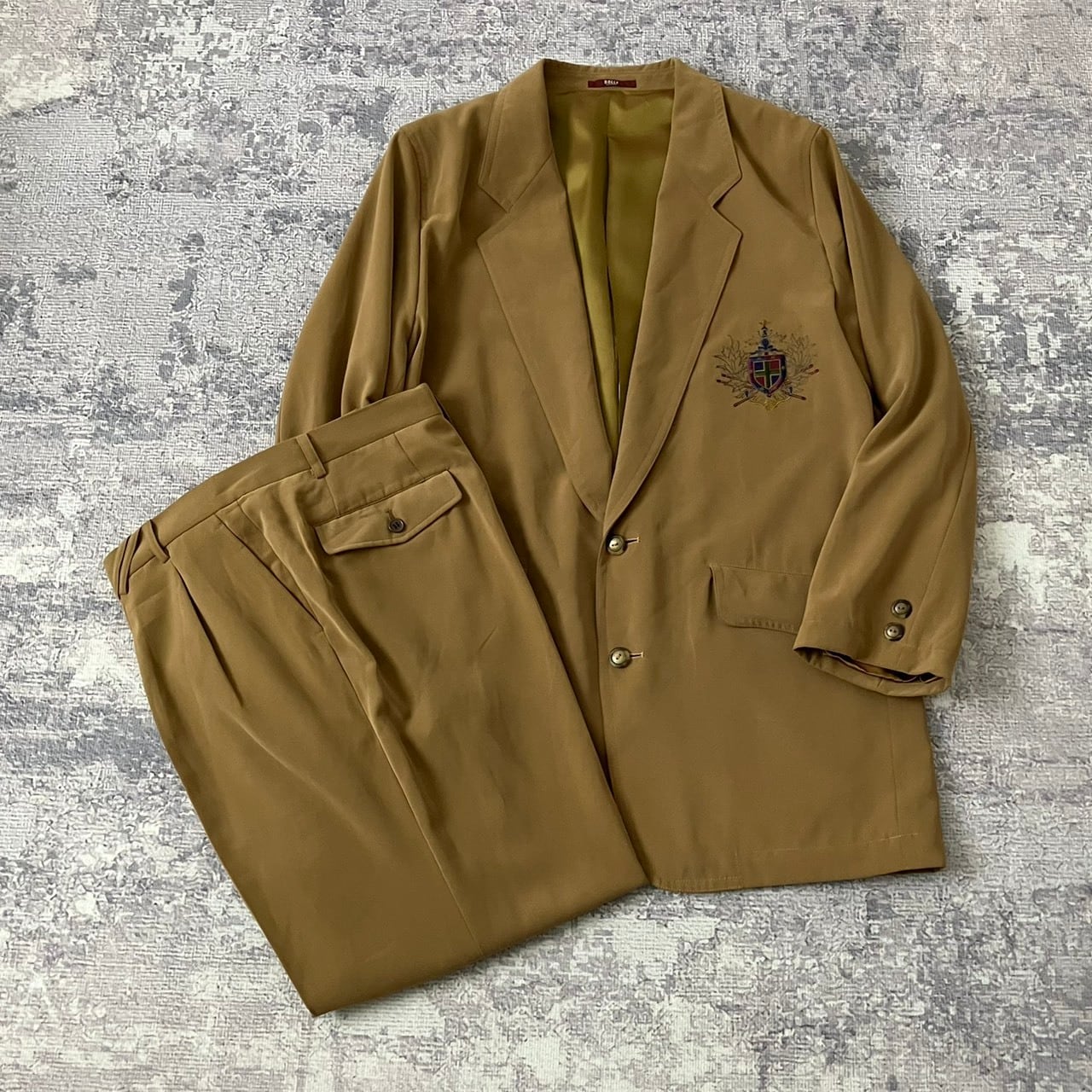 【90S】スーツ セットアップ ワイドスラックス 刺繍ロゴ 飾りボタン ブラウン