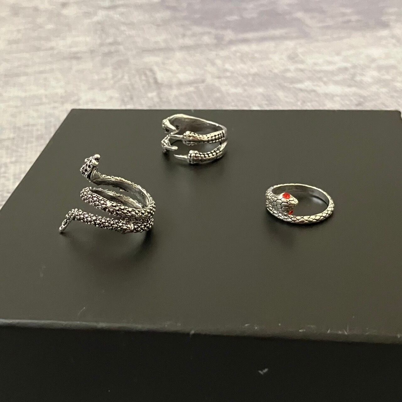 指輪3点を合わせたコーディネートです。