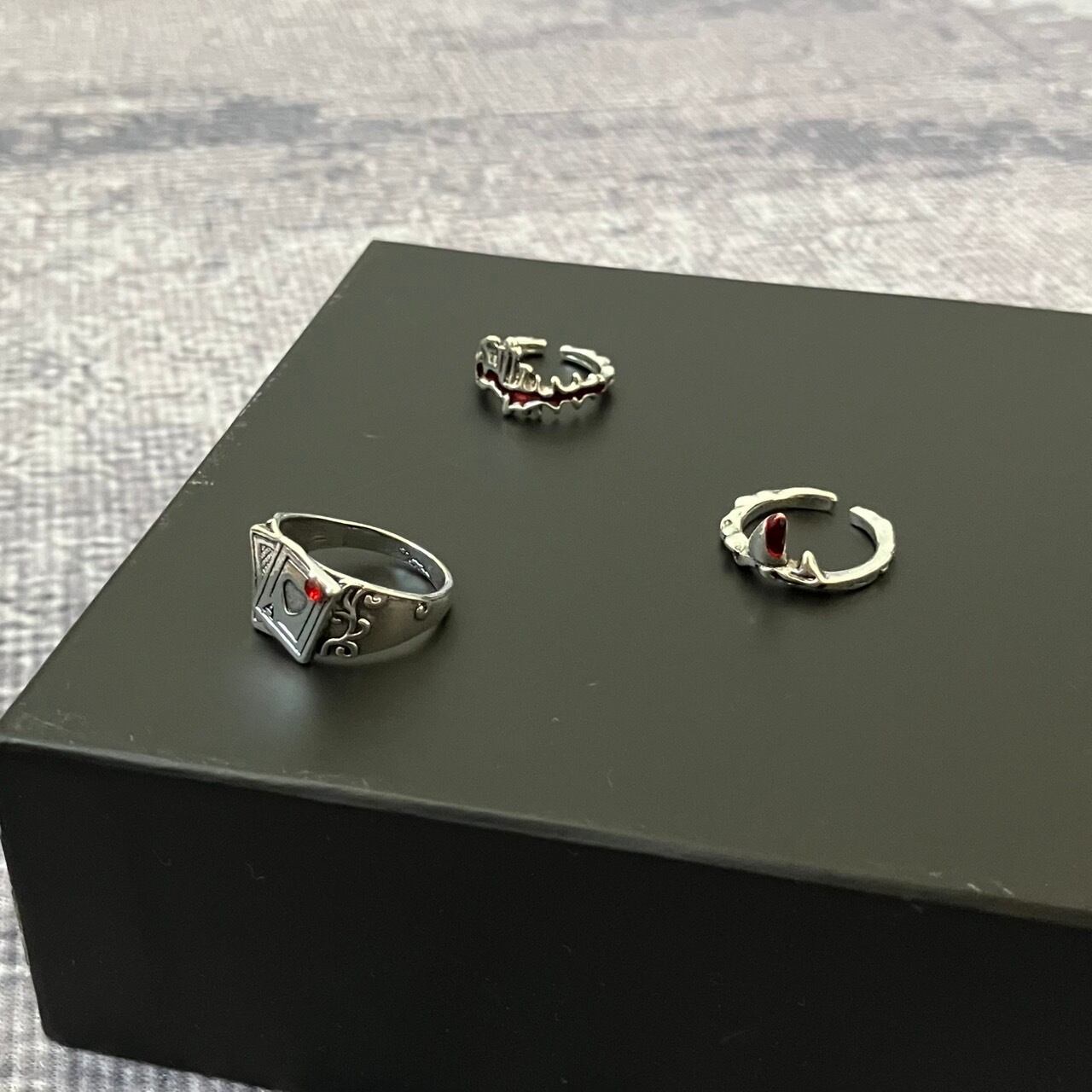 指輪3点を合わせたコーディネートです。