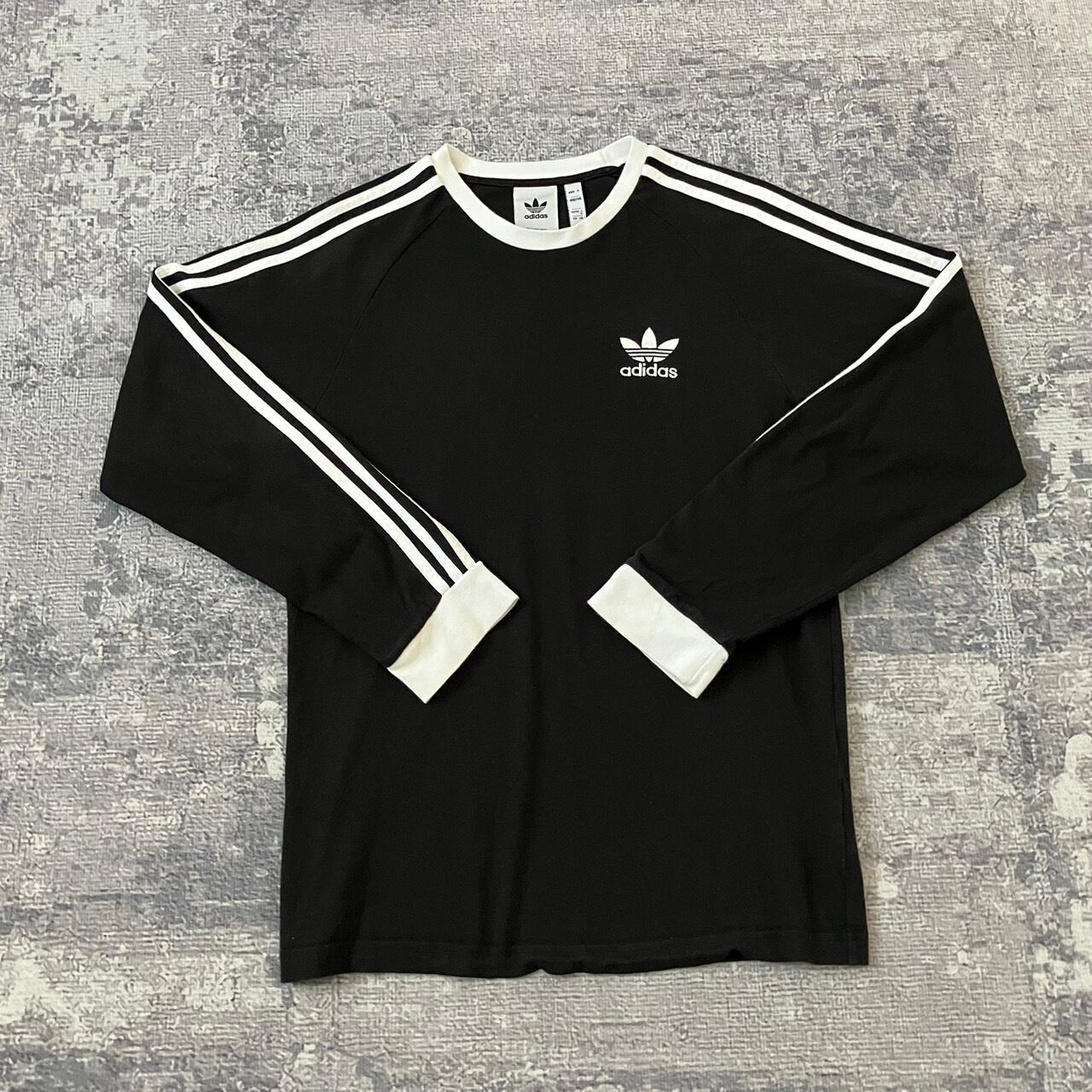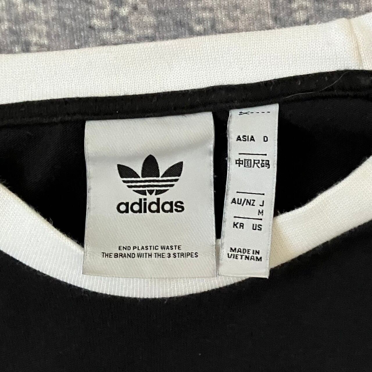 アディダスの長袖のリンガーTシャツ、