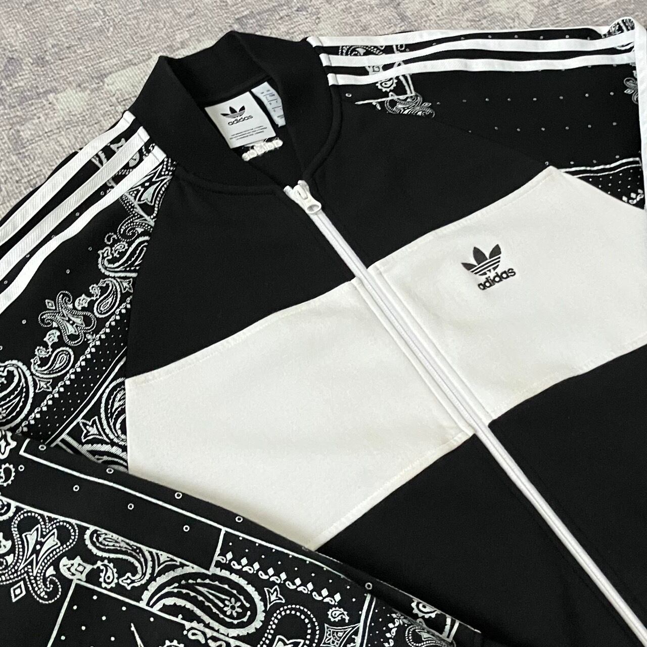 【激レア】アディダス トラックジャケット ペイズリー柄 刺繍ロゴ 黒 白 L