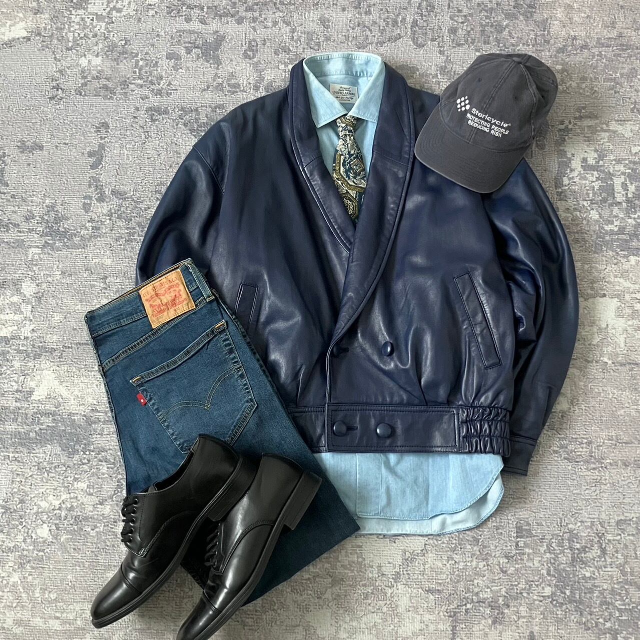 【ROA】c-boy style レザージャケット 短丈 羊革 紺 リーバイス